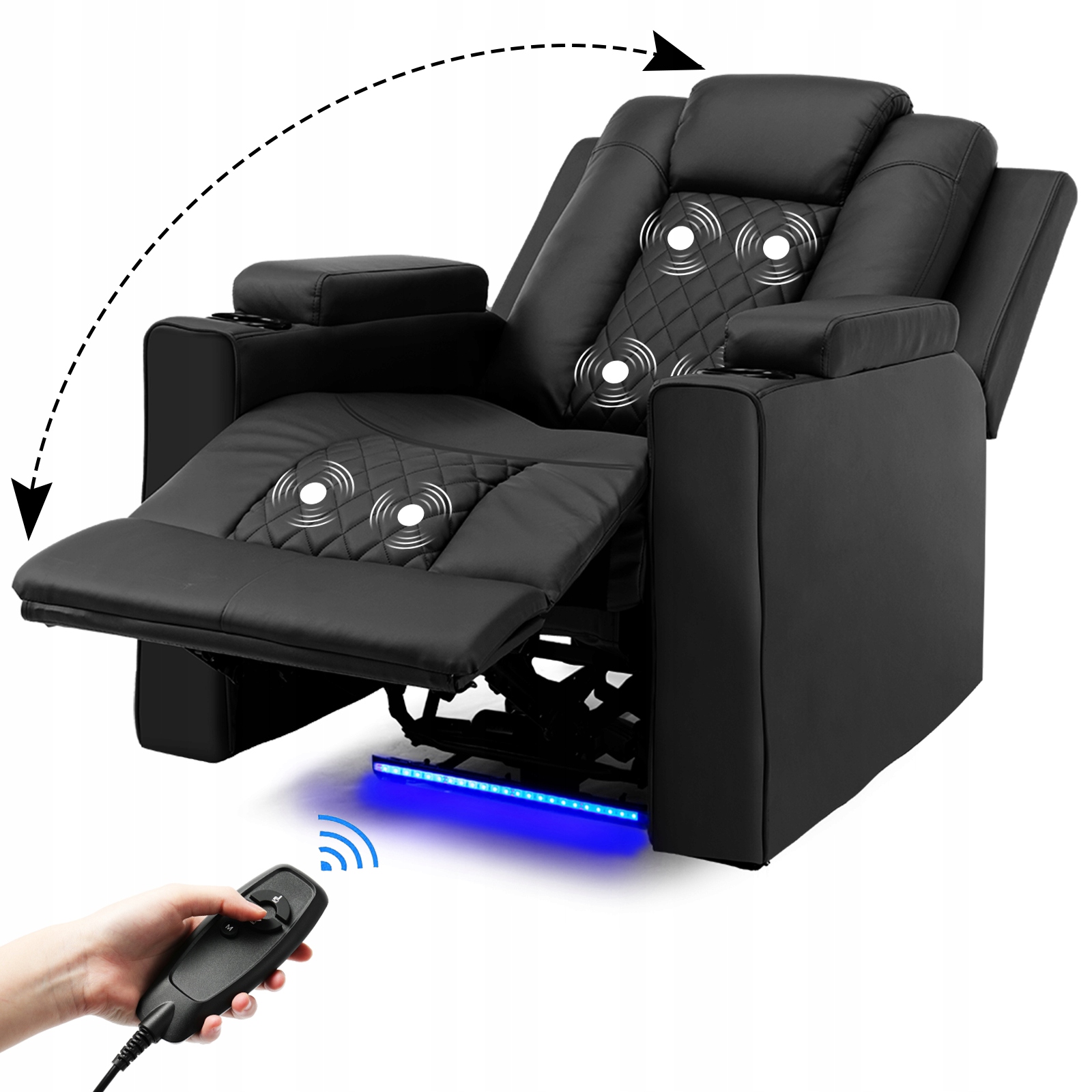 Fotel relaksacyjny Elektryczny fotel masujący aktywujący LED czarny